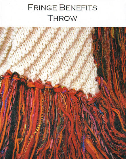 This is a quick and easy pattern to make a luxurious and comfortable throw. It is made using two bulky strands held together, using large needles, and you can use lots of yarns for the focal point of the throw, which is the voluminous fringe. Use all kinds of yarns (think about all those great left-overs you have) to make the fringe. Easy and understandable instructions.