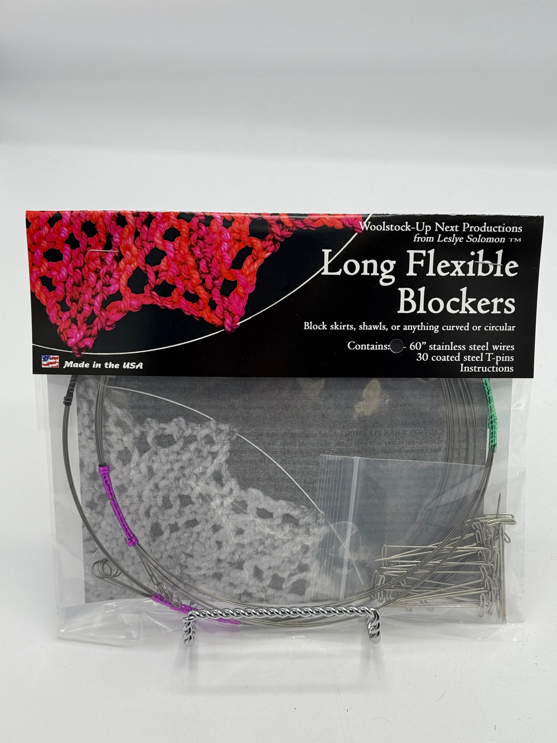 You will love the effects of blocking your garments like a pro. This is a money-saving double package containing six (6) 60" flexible wires, 30 T-pins, and full blocking instructions from knitting instructor, Leslye Solomon, the first to bring this technique to the knitting industry. Use these to easily control, form, position, and steam your circular shawls and other items that have long, curved, scalloped, or a pointy edges (see photo). The wire enables you to easily move the garment into the exact position. Anchor the position with the included T-pins on to your blocking surface. The results make your lace stitches open up, all stitches drape better, achieve desired measurements, and generally yields a neater knit fabric to improve the beauty of your knit garments. These wires are always re-usable. Proudly made in the U. S. A.