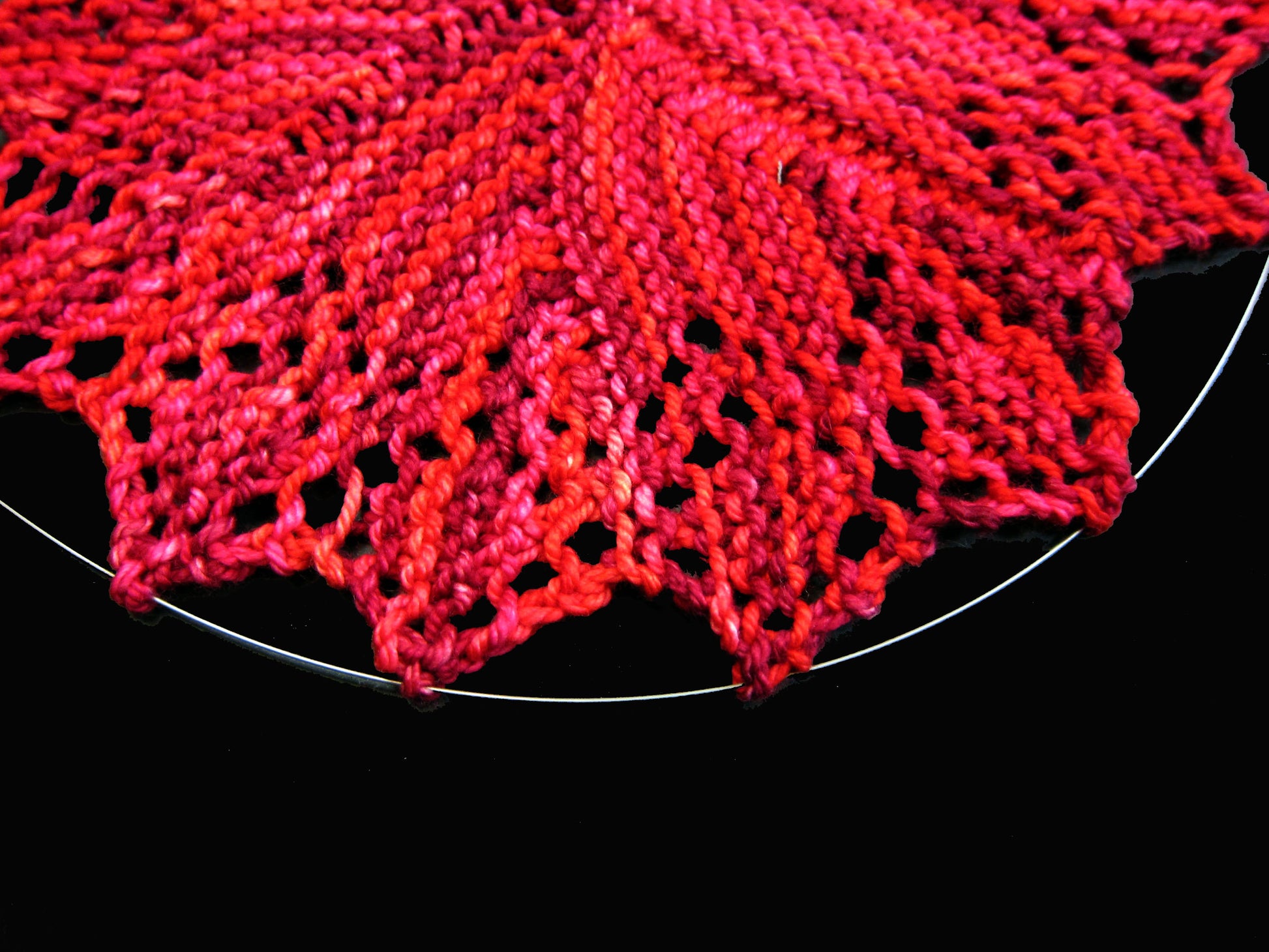 You will love the effects of blocking your garments like a pro. This is a package containing three (3) 60" flexible wires, 30 T-pins, and full blocking instructions from knitting instructor, Leslye Solomon, the first to bring this technique to the knitting industry. Use these to easily control, form, position, and steam your circular shawls and other items that have long, curved, scalloped, or a pointy edges (see photo). The wire enables you to easily move the garment into the exact position. Anchor the position with the included T-pins on to your blocking surface. The results make your lace stitches open up, all stitches drape better, achieve desired measurements, and generally yields a neater knit fabric to improve the beauty of your knit garments. These wires are re-usable. Proudly made in the U. S. A.